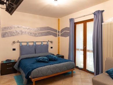 - La Camera Azzurra (piano terra), una stanza spaziosa e confortevole dotata di letto matrimoniale e di un letto aggiuntivo, perfetta per chi viaggia con un bambino o per piccoli gruppi di tre persone.