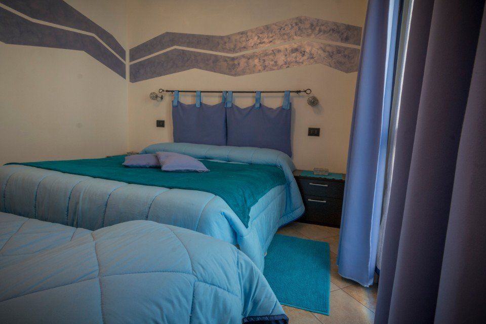 - There Blue Room (ground floor), a spacious and comfortable room with a double bed and an additional bed, perfect for those traveling with a child or for small groups of three people.